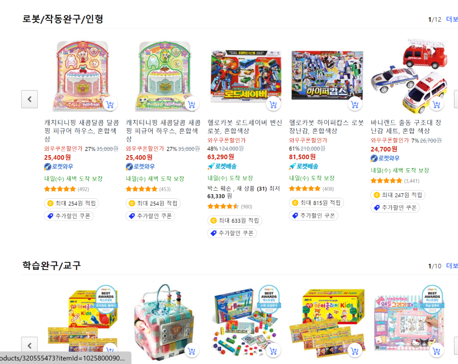 쿠팡에서는 토이트론 빅세일과 가정의달 빅세일을 통해 캐릭터 장난감들을 큰 폭으로 세일하고 있습니다.