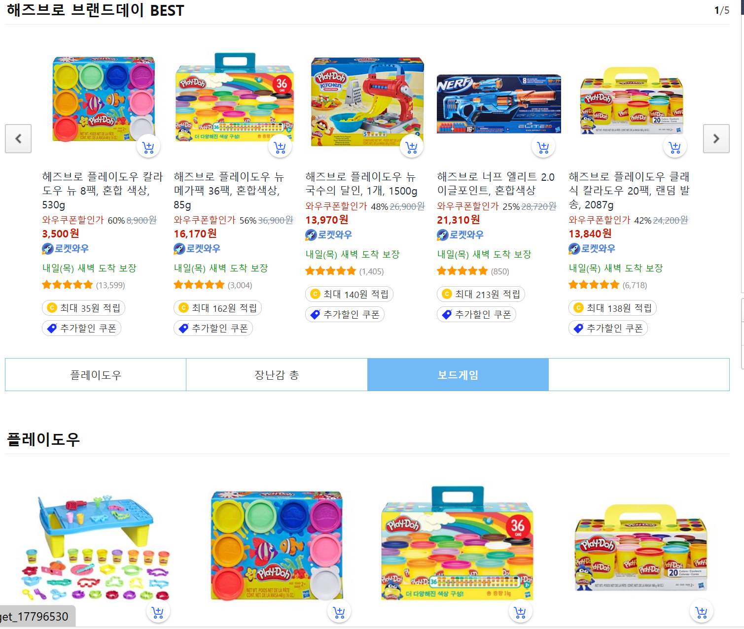 쿠팡에서는 플레이도우 (해즈브로) 기획전을 준비합니다. 저렴한 가격에 많은 플레이도우 상품들을 살 수 있습니다.